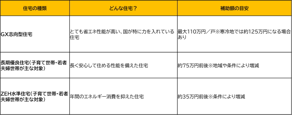 ※ 補助額は、住宅の性能・建て替えの有無・申請時期などによって変わる場合があります。